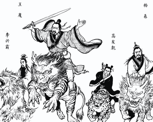 小说《封神演义》中的角色,分别是王魔、杨森、高友乾、李兴霸,乃截教仙派的外门修士传人,是九龙岛练气士。最终九龙岛四圣入了封神榜,被封神为灵霄宝殿四圣大元帅之神位。
